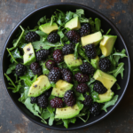 A refreshing salad featuring arugula, blackberries, avocados, and a zesty lime mint vinaigrette.