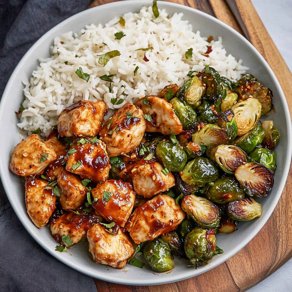 Air Fryer Sweet Chili Chicken and Brussels Sprouts