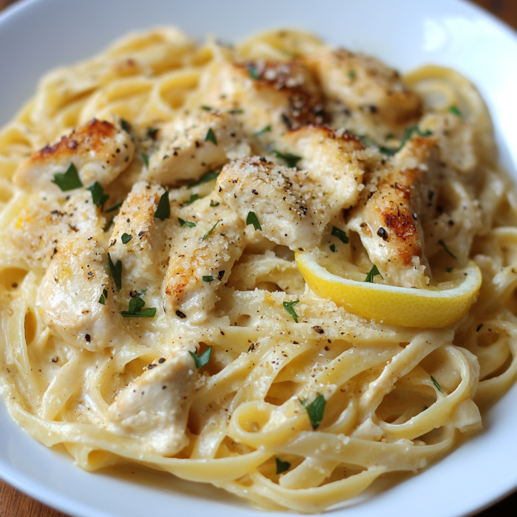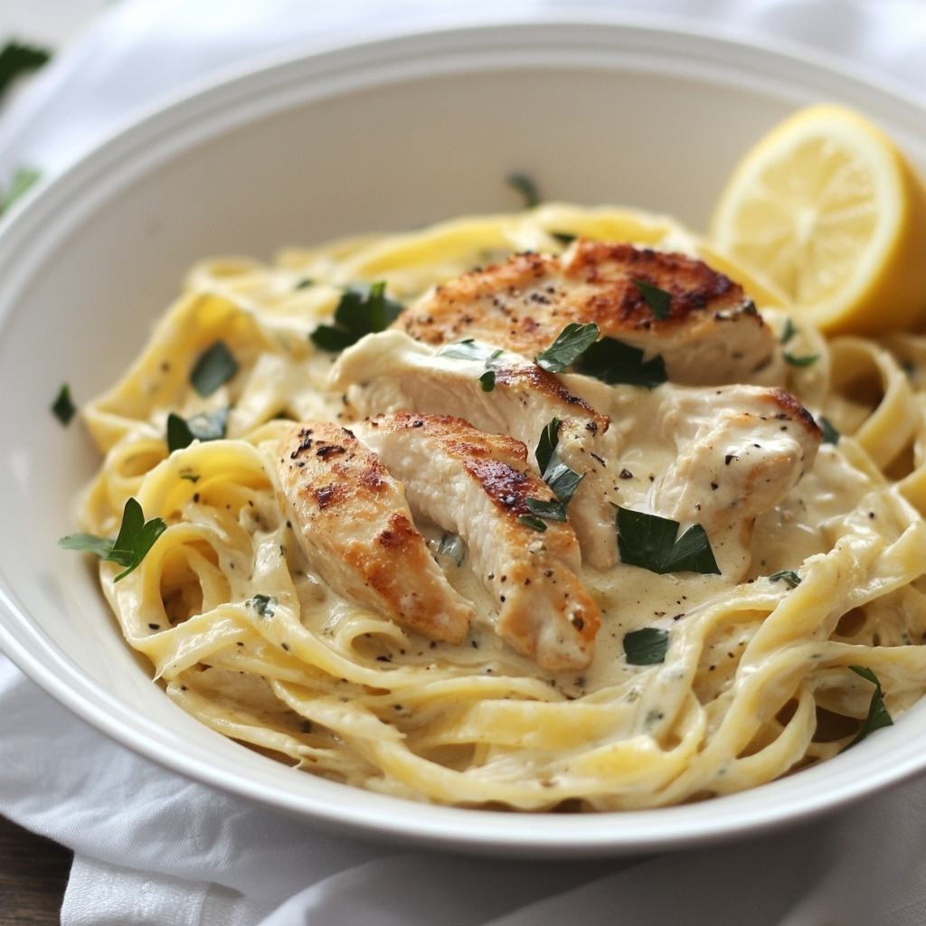 Creamy Lemon-Garlic Chicken Fettuccine