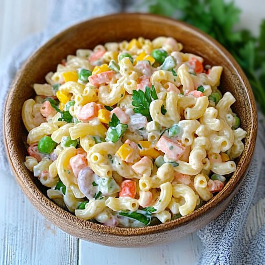 Macaroni salad is a vibrant, creamy dish that adds a burst of flavor to any meal. This easy-to-make recipe features tender pasta combined with fresh vegetables and a tangy dressing, making it an ideal choice for summer picnics, barbecues, or casual family dinners. With its customizable nature, you can easily adjust the ingredients to suit your taste preferences. Packed with colorful veggies like bell peppers and peas, this macaroni salad not only pleases the palate but also provides essential nutrients. Serve it chilled for a refreshing side dish that everyone will enjoy!